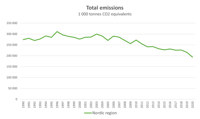 In the International Energy Agency report “Global Energy Review: CO2 Emissions in 2020” [1] it is stated that global energy-related CO2 emissions fell by 5.8 percent in 2020, and that the decline in CO2 emissions from oil use in the transport sector accounted for well over 50 percent of this drop. No corresponding figure is available for the Nordic region, but it is reasonable to assume that a decline in the transport sector (excluding International aviation) had a large impact here as well.