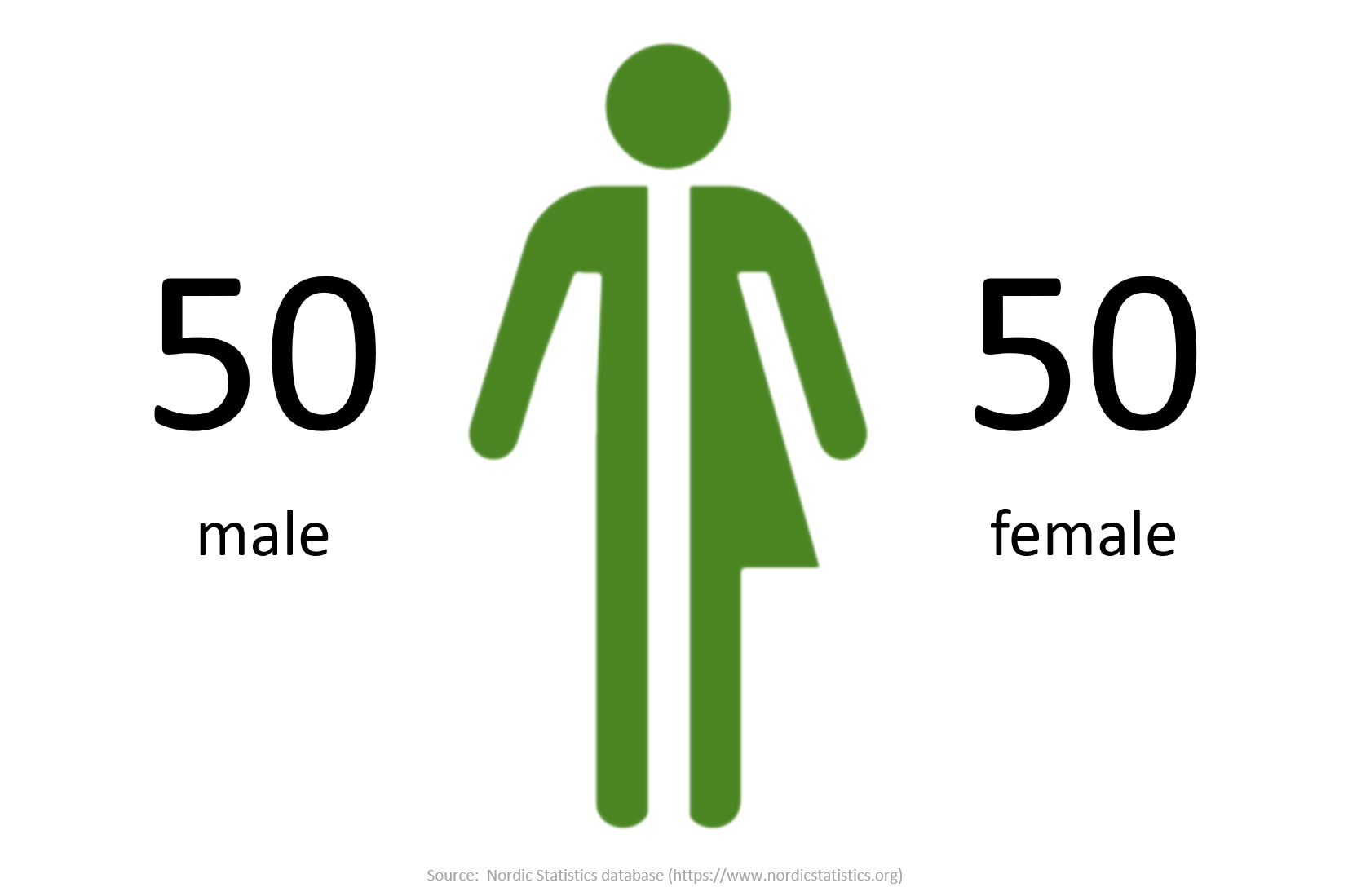 If 100 persons lived in the Nordics 50 would be male and 50 would be female.